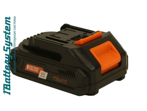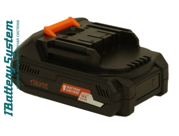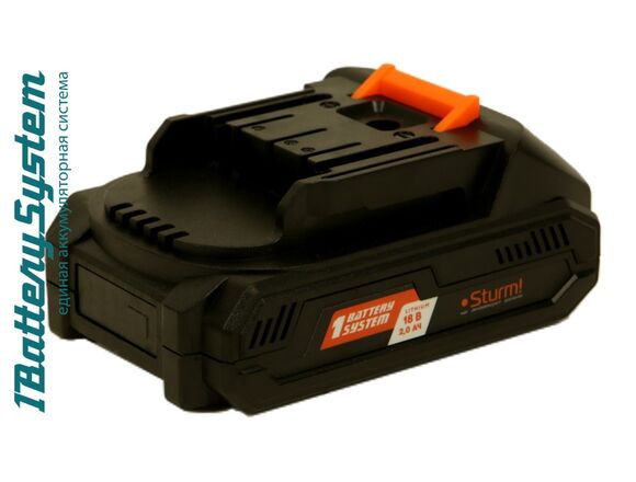 Аккумулятор 1BatterySystem (18 В; 2 Ач) Sturm SBP1802 подходит для всех инструментов Sturm с логотипом 1BatterySystem.