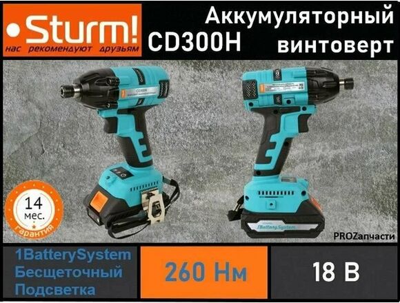 Винтоверт Б/Щ ударный 1BatterySystem STURM 1/4" 260Нм, 18В, 2*2Аh, КЕЙС (1/6)