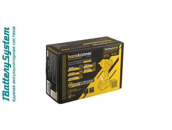 Гайковерт Б/Щ ударный 1BatterySystem HANSKONNER PLATINUM 18В 600Нм 1/2", 3ск, без АКБ и ЗУ (1/6)