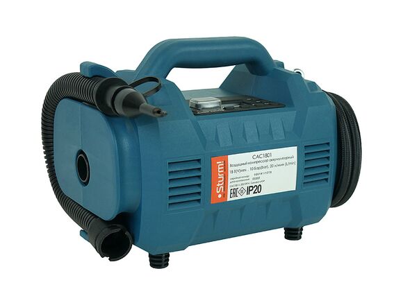 Аккумуляторный инструмент Sturm CAC1801 - это компактный инструмент для подачи воздуха при накачивании колес велосипедов и автомобилей, мячей, матрасов и т.д. В комплект входят шланг и набор адаптеров.