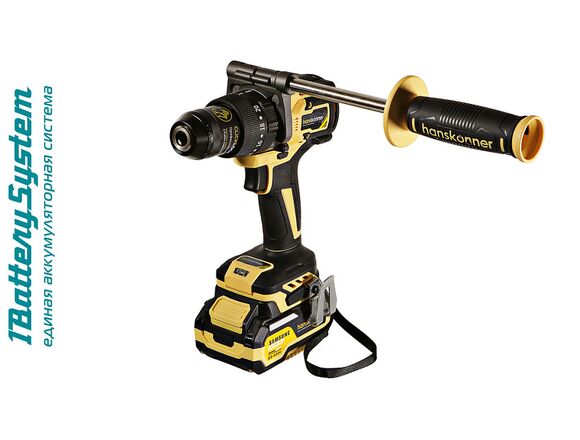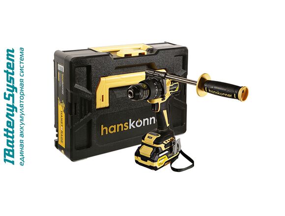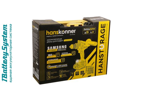 Шуруповерт Б/Щ ударный 1BatterySystem HANSKONNER PLATINUM 18В 165Нм SAMSUNG 2АКБ 2+4Ач 13ммКЕЙСHS1/4