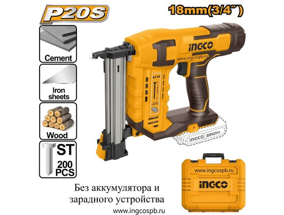 Степлер "20V MAX" INGCO 20В гвоздь ST 18мм(бетон/кладка/лист.металл/дерево), без АКБ/ЗУ, КЕЙС (1/4)