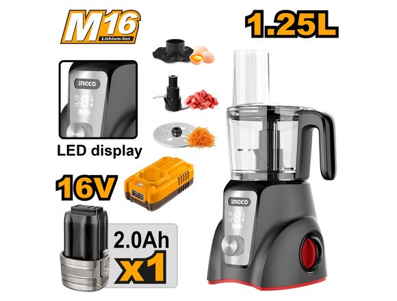 Комбайн кухонный 16В INGCO 1,25 л 1АКБ*2Ач+ЗУ (1/4)