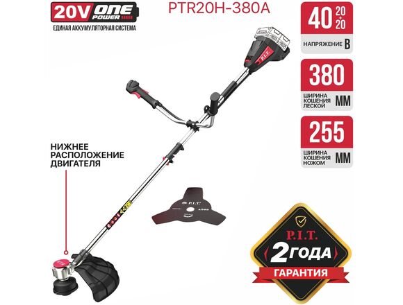 Триммер OnePower Б/Щ P.I.T. 40В (20В+20В) без АКБ/ЗУ ВЕЛОРУЧКА нижний двигатель SOLO (1/1)