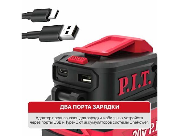 Зарядное для мобильных устройств + фонарик OnePower P.I.T. 20В, порты USB / Type-C
