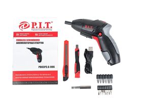 Отвертка аккумуляторная P.I.T. 3.5Нм, 1.3Ач, биты 15шт, пов. рук,USB зарядка, встр. фонарик ,1/20