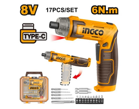 Отвертка аккумуляторная INGCO 8В, 6Нм, 17 бит + держатель, ТРАНСФОРМЕР, LED + КЕЙС (1/20)