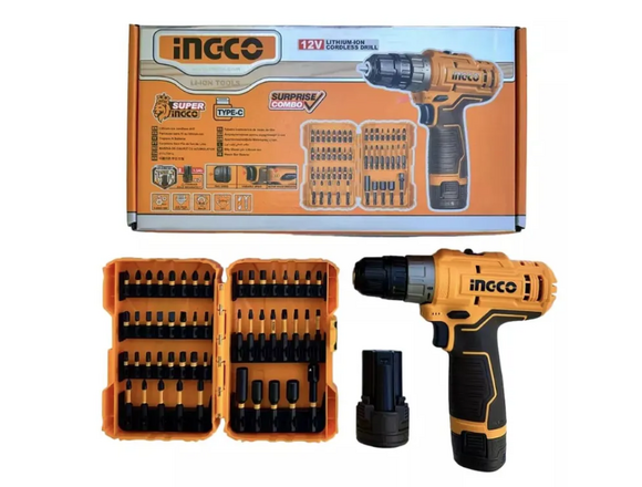 Набор "АКЦИЯ" шуруповерт INGCO 12В 20Нм 2АКБ/type-C+набор УДАРНЫХ бит 50шт В КЕЙСЕ