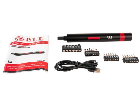 Отвертка аккумуляторная P.I.T. 3.6В (2Нм, 1.3Ач, биты 23шт, USB заряд), 1/20