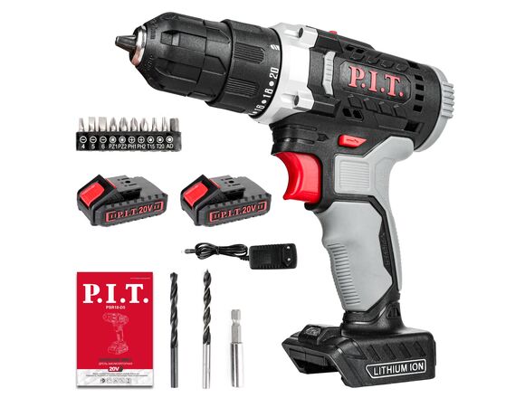 Шуруповерт P.I.T. 20В, 2АКБ*1,5Ah + ЗУ, 30Нм, быстрая зарядка, КЕЙС (1/5)