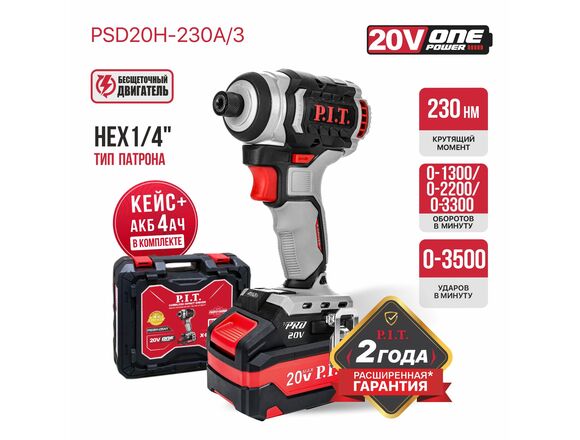 Винтоверт IMPACT Б/Щ OnePower P.I.T.20В 230Нм 3ск, HEX 1/4" 1АКБ*4Ач+ЗУ