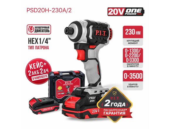 Винтоверт IMPACT Б/Щ OnePower P.I.T.20В 230Нм 3ск HEX 1/4"2АКБ*2АЧ+ЗУ