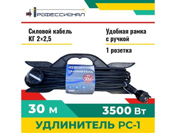 Удлинитель РС-1 ПРОФЕССИОНАЛ КГ 2*2,5 16А 30м