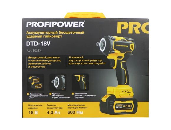 Гайковерт Б/Щ PROFIPOWER 18V 600Нм 2АКБ*4.0Ач+З/У DTD-18V (1/1)