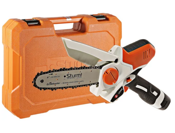 Аккумуляторная цепная пила Sturm CSC1804 прекрасно справится с обрезкой веток деревьев и простыми столярными работами.