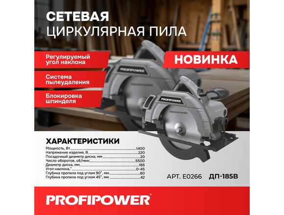Пила циркулярная PROFIPOWER 1,4кВт 185*20мм до 60мм (ДП-185В) (1/4)