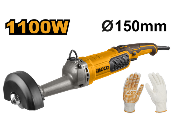 Шлифмашина ПРЯМАЯ INGCO INDUSTRIAL 1100Вт, 150мм*М14, КОЖУХ + прерчатки (1/2)