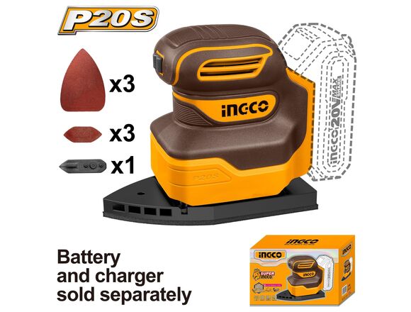 Шлифмашина вибрационная ДЕЛЬТА "20V MAX" INGCO INDUSTRIAL 93*172мм / 86*27мм (12/60)