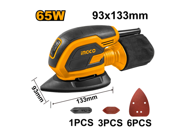 Шлифмашина вибрационная ДЕЛЬТА INGCO INDUSTRIAL 65Вт 93*133мм абразив 6шт (1/8)