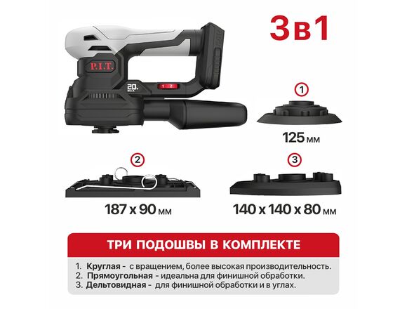 Шлифмашина вибрационная ONE POWER P.I.T.3в1 125мм/90*187/140*140*80мм, 6000-12000об/мин SOLO (1/6)
