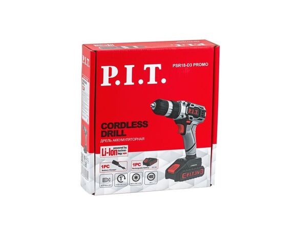 Аккумуляторная дрель-шуруповерт P.I.T. 20В, 1.5Ач PSR18-D3 Promo – это новый уровень комфорта и производительности: современный дизайн корпуса, улучшенная эргономика рукояти, в точности повторяющая форму руки и комфортный вес инструмента даже при работе на весу.