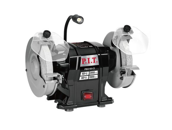 Точильный станок P.I.T. с LED подсветкой Ø150*12.7*20мм, 300Вт, пылезащита (1/2)
