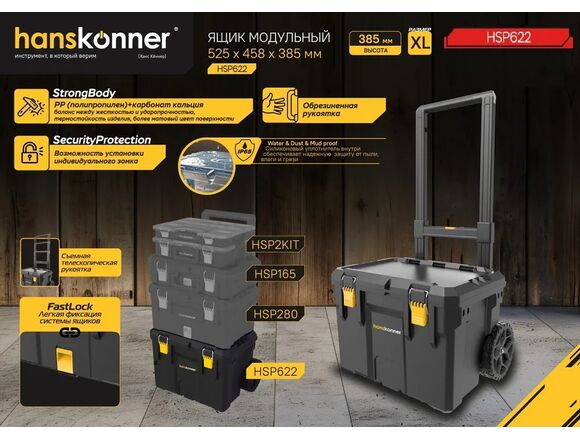 Ящик модульный система хранения HANSTORAGE PLUS 525*458*385мм размер XL КОЛЕСА+ручка ТЕЛЕСКОП (1/2)