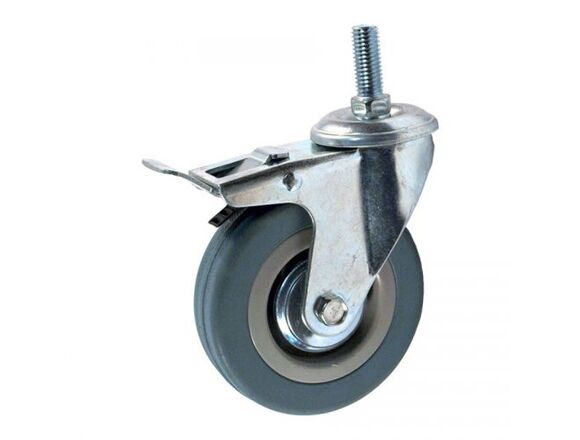 Колесная опора АППАРАТНАЯ СЕРИЯ поворотная с тормозом, с болтом, Ø125мм, ширина 27мм, груз 100кг