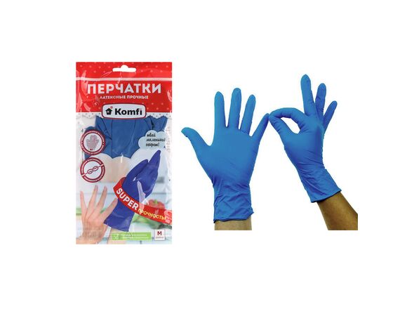 Перчатки KOMFI латексные прочные L, 1 пара,(12/144)
