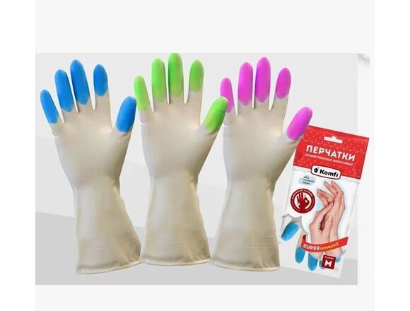 Перчатки KOMFI ПВХ хозяйственные (3 цвета в одной коробке) L, 2 шт (12/72)