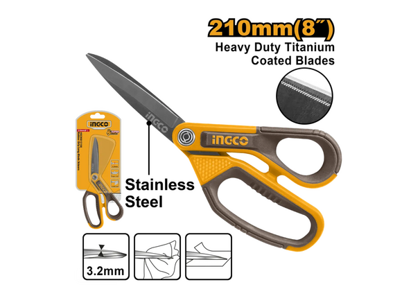 Ножницы универсальные INGCO INDUSTRIAL 210мм, ЛЕЗВИЕ ТИТАН 3,2мм, 2К ручки (6/24)
