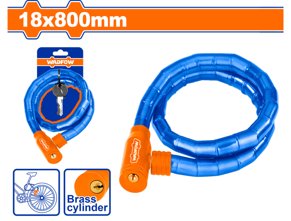 Замок велосипедный WADFOW 18*800мм КЛЮЧ (1/24)