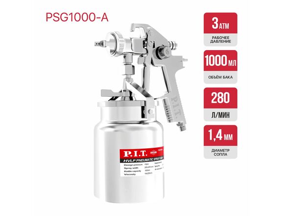Краскопульт пневматический P.I.T. нижний бачок 1000мл, сопло 1,4мм, 280л/мин (краска 190мл/мин),1/10