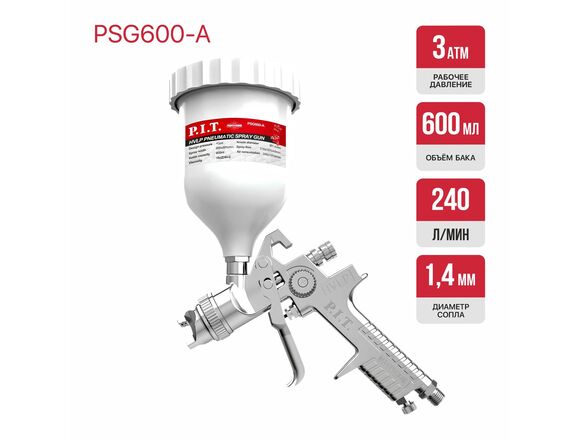 Краскопульт пневматический P.I.T. верхний бачок 600мл, сопло 1,4мм, 240л/мин (краска 210мл/мин),1/20
