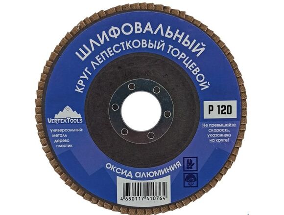 Круг лепестковый торцевой Vertextools 12600-120 необходим для обработки различных поверхностей. Диск шлифовальный помогает подготовить поверхность под покраску, удалить ржавчину и оскалины, зачистить швы и кромки. Круг шлифовальный справляется с металлом, деревом, пластмассой и другими материалами. Представленная модель состоит из прямоугольных шлифовальных отрезков, которые закреплены внахлест на подложке из стекловолокна. Такая конструкция позволяет качественно отшлифовать не только плоские, но и вогнутые поверхности. Абразивный корунд стирается равномерно по всему периметру, что позволяет использовать круг до полного изнашивания. Диск лепестковый устанавливается на стационарные станки или специальные электроинструменты. Круги для шлифовальной машины имеют высокое качество зачистки, производят минимальный шум при работе, характеризуются отсутствием вибрации.
