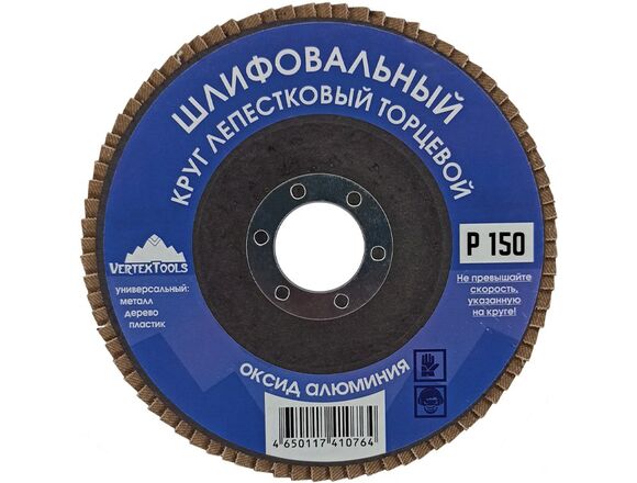 Круг лепестковый торцевой 150 мм, Р150 vertextools 12700-150 предназначен для обработки различных поверхностей.