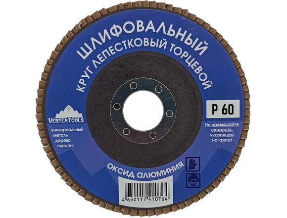 Круг лепестковый торцевой 150 мм, Р60 vertextools 12700-060 предназначен для обработки различных поверхностей.