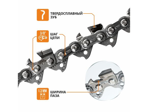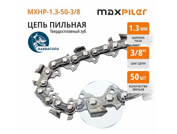 Цепь пильная с ПОБЕДИТОВОЙ напайкой MAXPILER PROF BARRACUDA 50зв 3/8 1,3мм МЕТАЛЛ БОКС