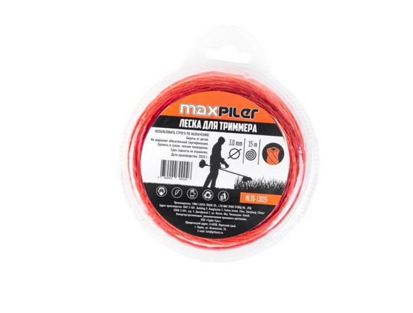 Леска для триммера MAXPILER 3.0мм*10м, КВАДРАТ КРУЧЁНЫЙ картон