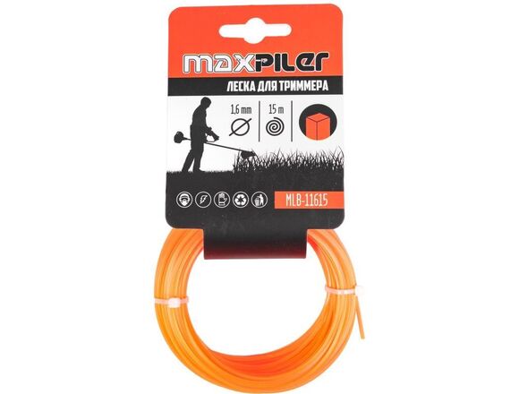 Леска для триммера MAXPILER 1.6мм*15м, КВАДРАТ картон
