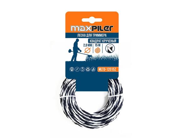 Леска для триммера MaxPiler 2.4мм*10м, квадрат крученый (черно-белая) картон