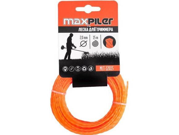 Леска для триммера MAXPILER 2.0мм*15м, КВАДРАТ КРУЧЁНЫЙ картон