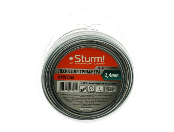 Леска для триммера ПРОФИ STURM 2,4мм*15м С ЖИЛОЙ, круг, БЛИСТЕР (10/120)