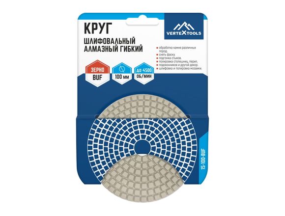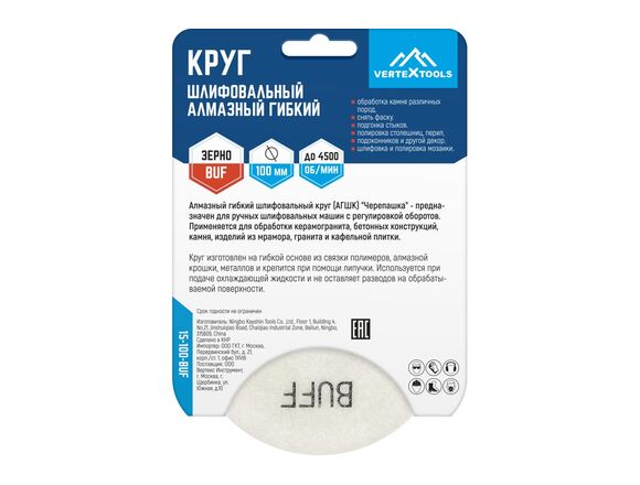 Круг шлифовальный черепашка для полировки мрамора BUF 100 мм vertextools 15-100-BUF предназначен для ручных шлифовальных машин с регулировкой оборотов. Применяется для обработки керамогранита, бетонных конструкций, камня, изделий из мрамора, гранита и кафельной плитки.