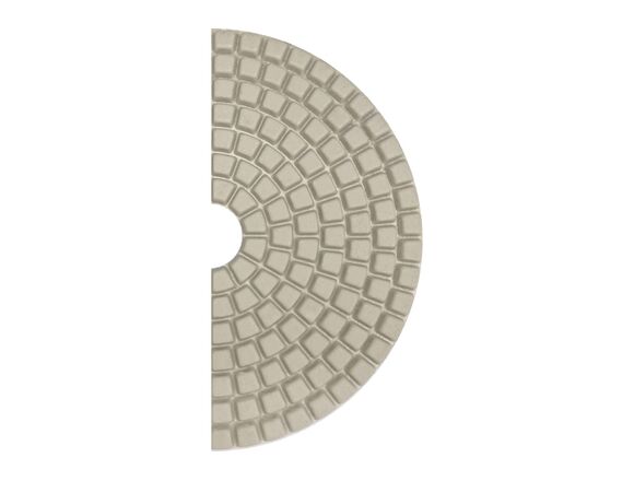 Круг изготовлен на гибкой основе из связки полимеров, алмазной крошки, металлов и крепится при помощи липучки. Используется при подаче охлаждающей жидкости и не оставляет разводов на обрабатываемой поверхности.