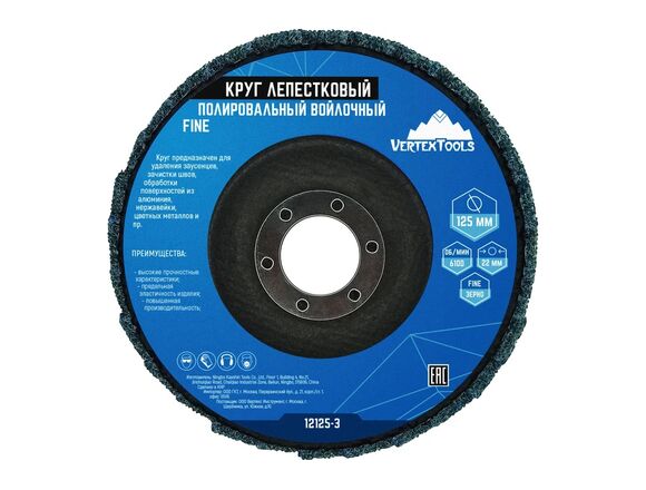 Круг лепестковый полировальный войлочный VERTEX 125*22мм FINE (ТОНКИЙ) (10/100)