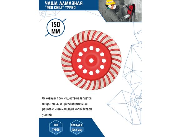 Чашка алмазная по бетону "RED CHILI" 150мм ТУРБО (1/25)