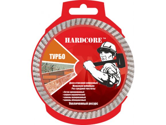 Диск алмазный Турбо Hardcore 181230 предназначен для угловых шлифовальных машин (болгарок). Используются для работы по армированному бетону, натуральному и искусственному камню, керамическому кирпичу и т.д.Диск имеет равномерный алмазный слой, оснащенный канавками пылеотвода. Подходит для сухого реза. Применение жидкостного охлаждения увеличивает ресурс диска. Оснастка отличается повышенной производительностью и скоростью выполнения работ.Диски Железобетон.1. специальные алмазы + дополнительная добавка специального абразива для максимальной производительности инструмента в металле 2. геометрия сегмента без пропусков для предотвращения вибрацийВнимание, изображение товара может отличаться от реального! Верные параметры указаны в технических характеристиках товара.