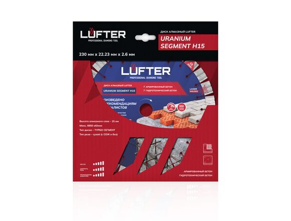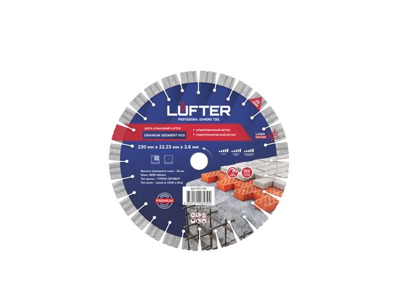 Диск алмазный LUFTER URANIUM SEGMENT H15 230*2,6*22,2*15мм ВЫСОКОАРМИРОВАННЫЙ ГИДРОТЕХ.БЕТОН(10/30)