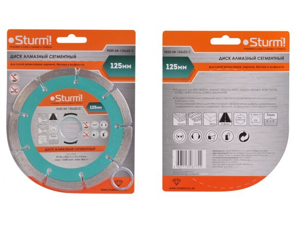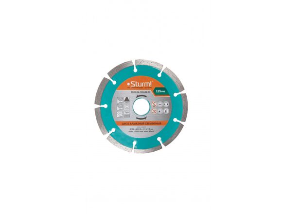 Диск алмазный сегментный Sturm 9020-04-125x22-C предназначен для ручных резчиков и станков. Применяется для сухого реза по камню, кирпичу, бетону и асфальту. Диск имеет высокую концентрацию алмазов внутри рабочего слоя. Металлическая связующая обеспечивает эффективную работу. Высота сегментов – 7 мм.В комплекте поставляется переходное кольцо 22.2/20 мм.